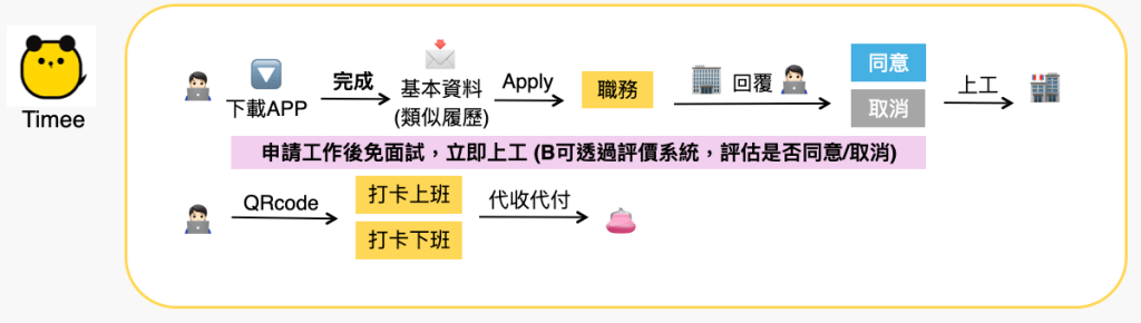 To boost ‘Tanji’’s competitiveness in the Taiwan part-time job market, we conducted competitive analysis and user research to build a new job-seeking strategy—eliminating the application process. We also tested the feasibility of localizing the successful Japanese business model.